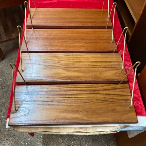 Teak hylder med div former og udskæringer prisen er pr styk