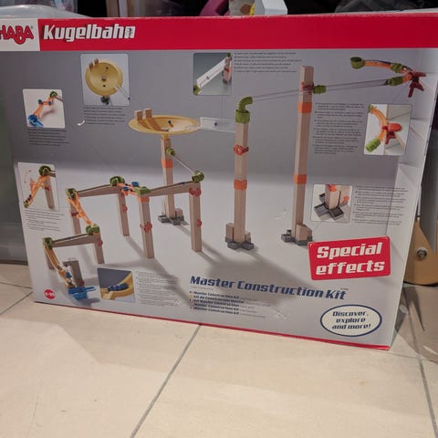 Kuglebane med samlevejledning og mulighed for at bygge sin egen bane. Store dele så børn under 3 år kan lege med.