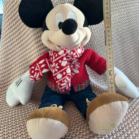 Original Disney Mickey Mouse bamse med sort, rød og gul farve.