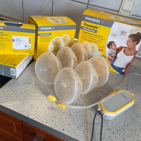 Medela PersonalFit PLUS brystpumpe tilbehør sæt inklusive brysttragte, flasker med låg og andre tilbehørsdele. Kompatibelt med Medela brystpumper og designet til at lette amning og udmalkning.