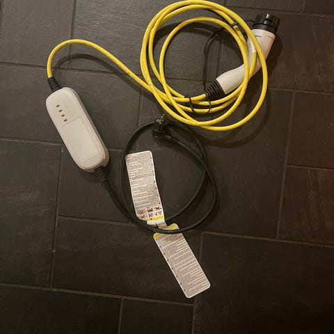 5 meter langt ladekabel + overgang fra stik med jord.