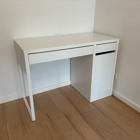 Hvidt Micke skrivebord fra IKEA. Enkelte ridser øverst, ellers i fin stand