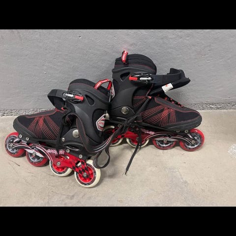 Sælger disse Cougar inline rulleskøjter i størrelse 44. De er i rigtig flot stand og har kun været brugt meget lidt, hvilket ses tydeligt på de hvide hjul og den minimale slidtage på støvlen. Der medfølger knæbeskyttere i slidt tilstand, men fuldt funktionelle.