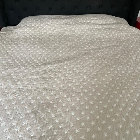 Fint vatteret sengetæppe i støvet lyseblå.