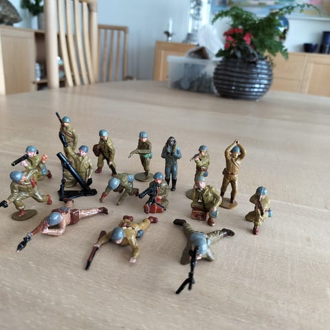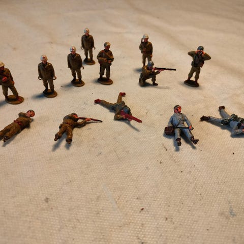 Reisler soldater med mørk hud samt funktionerbar tændstikkanon. Soldaterne er ca. 5 cm høje og af hårdt materiale.