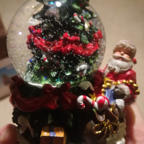 Flot snekugle med kørende tog, lys og musik (melodien Bjældeklang)