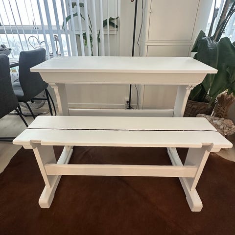 Skrivepult, Retro, Meget flot gammel skolebænk og bord. Lavet i hånden. Dansk snedker håndværk. Til sommerhuset eller børneværelset.