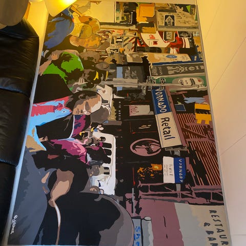 Maleri på metalplade af L'Ron Harald fra 2010. Malet med posca tusser. 70 cm i diameter.