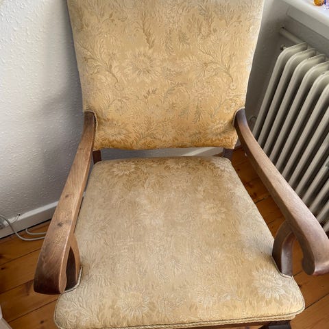2 dejlige lænestole … den ene skal have limet armelænet og den anden stole skal have limet stolebenet .