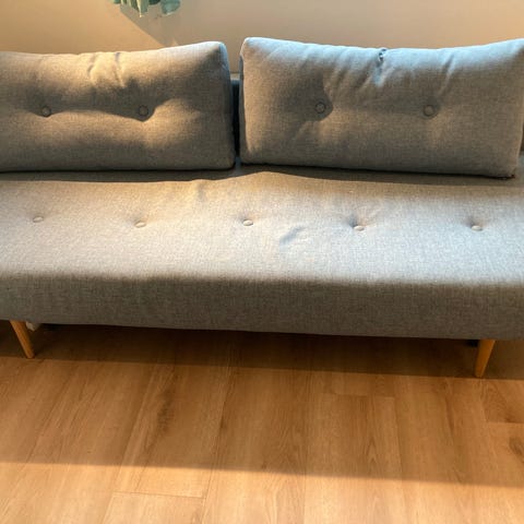 Ilva Sovesofa i virkelig flot stand. Har kun været brugt lejlighedsvis til gæster, ingen pletter, huller eller andet. Med indbygget opbevaring. Nem at flytte, skilles nemt i 3 dele. Liggemål 140x197 cm.