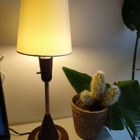 Messing teak lampe. Unik retro. Kun 550 KR. FLOT I OVERFLADEN.