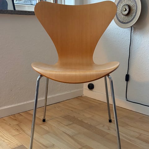 Arne Jacobsen 7-er stol. Birketræ og Stof