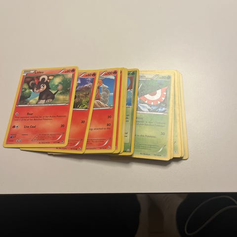 Pokémon samlekort sæt bestående af 5 kort med forskellige figurer og illustrationer. Kortene kan anvendes til samling eller spil. Tidlige brug spor.