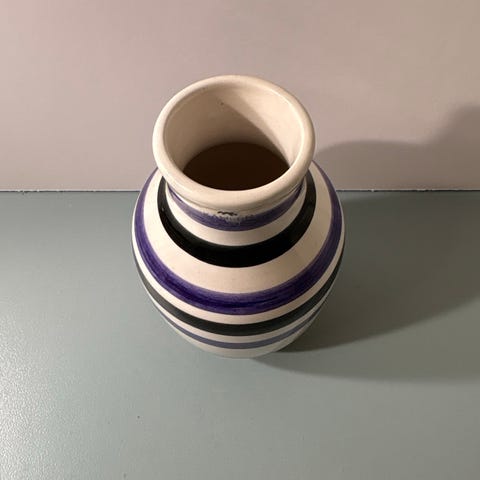 Kahler vase , sort /hvid 22 cm , med et lille skår , derfor prisen , ellers er den helt ok