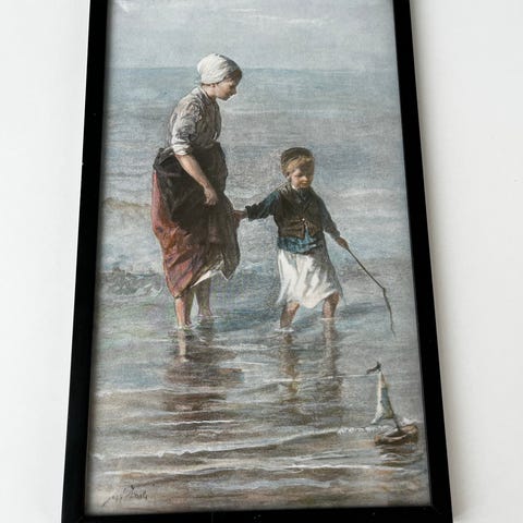 Flot gammelt billede med fiske udstyr og mørkegrøn ramme i flot stand H26,5cm x B20cm mp 350kr afhentes i 8570 Trustrup eller sendes for 45kr