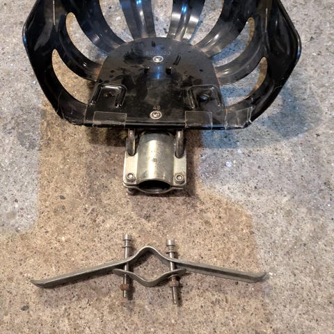Cykel sæde med beslag til montering af barnestol. Sort farve, lavet i plast og metal. Passer til voksne cykler.