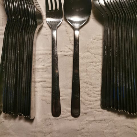 Gense 13/10 kødgaffel saffron i rustfrit stål. Designet til almindelig brug ved måltider.