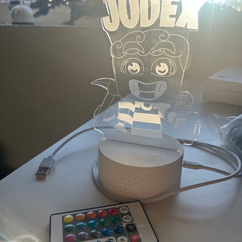 Skift farve/indstillinger med fjernbetjening. USB ledning medfølger, men ikke stik.