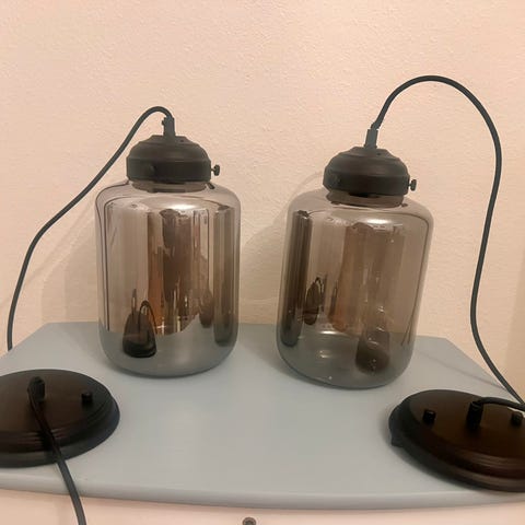 Lamperne har aldrig været brugt og den ene er kun pakket ud for at blive fotogen.