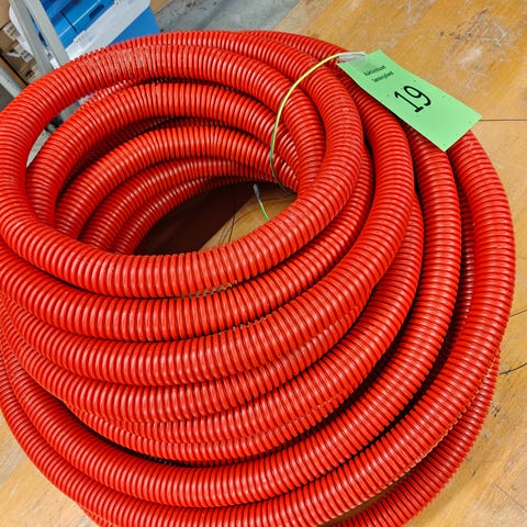 Rød bølgeflex slange med fleksibel struktur, velegnet til beskyttelse af kabler og rør. Fremstillet af holdbart materiale, designet til at modstå bøjning og slid.