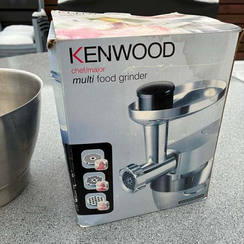 Perfekt som kødhakker og til fremstilling af småkager. Inkluderer tilbehør til hakning af kød i forskellig grovhed. Pølsehorn til pølser og diverse skabeloner til småkager. Den er lavet af metal og plastmaterialer. Passer til ældre Kenwood køkkenmaskiner af modellen chef og major.