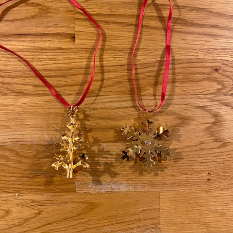 Årets påskepynt 2004 og 2005. Georg jensen. Uden æsker. Guld belagt. 250kr. Stk. 400kr. Samlet.