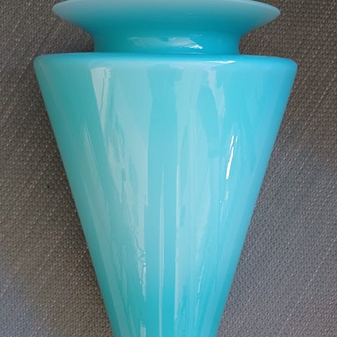 Holmegaard Orkidevase i lyseblåt glas med bobleoptik i foden.