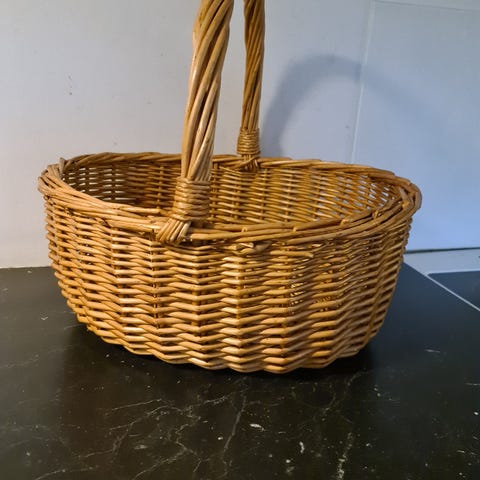 Der er her tale om et fin retro kurv i metal og flet med rum inddeling og hank.