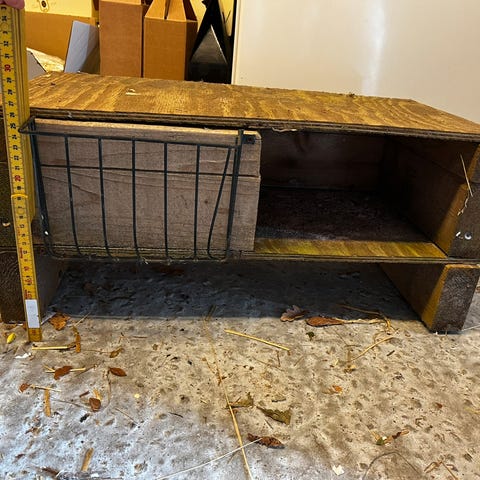 Gamle minkburer. De er brugt til bogreoler, men kan også bruges til natbord og andre kreative ting.