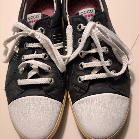 ECCO Sneakers i størrelse 43. Skoene har et lyst design med detaljer i forskellige teksturer. Velegnet til daglig brug. Gået med dem en gang.