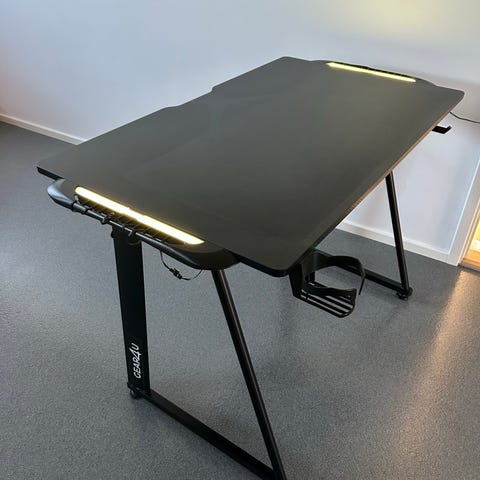 Stabilt gamerbord fra gear4u med LED-lys, kopholder, headset-holder og smooth design