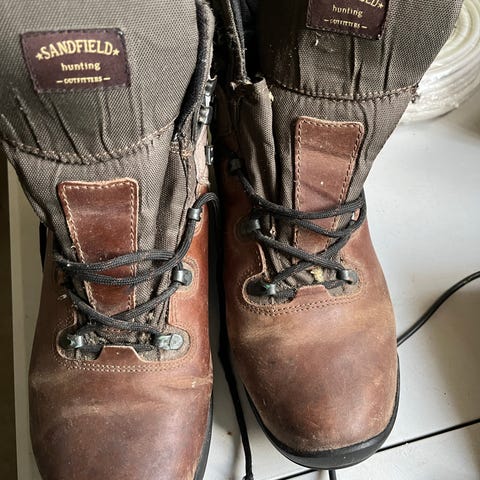 Harkila vandrestøvler i brun læder. Støvlerne har snørebånd og kraftig sål, velegnet til udendørs brug og vandreture. Vandtæt membran, varme og god komfort. Anvendt til vandreture i Alperne og Skotland. Str. 43.