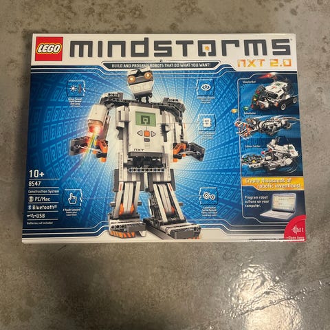 LEGO Mindstorms robotbyggesæt med forskellige dele og manual. Sættet inkluderer komponenter til at bygge og programmere robotter, herunder sensorer og motorer. Velegnet til undervisning og hobbybrug inden for robotteknologi.
