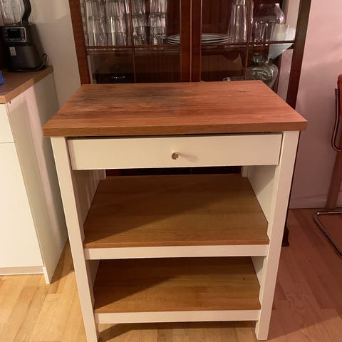 Pænt og praktisk møbel som kan bruges som køkkenø, barskab eller puslebord.
