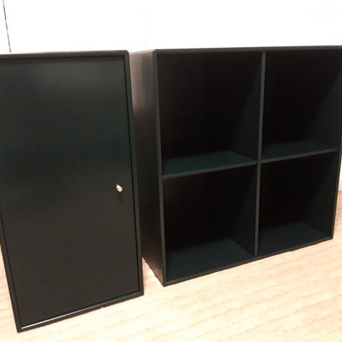 Modulet er i brugt stand, og trænger til en opfriskning af lak og farve. Skillevæg har revnet maling/lak. Ellers i fornuftig stand.