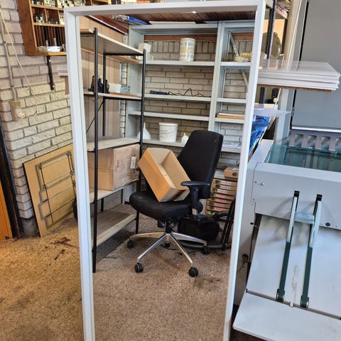 Spejl med sort ramme i rektangulært design. Til vægophæng.
