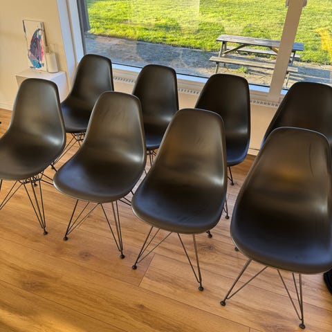 Grå Eames DAR spisebordstole m. sort stel
