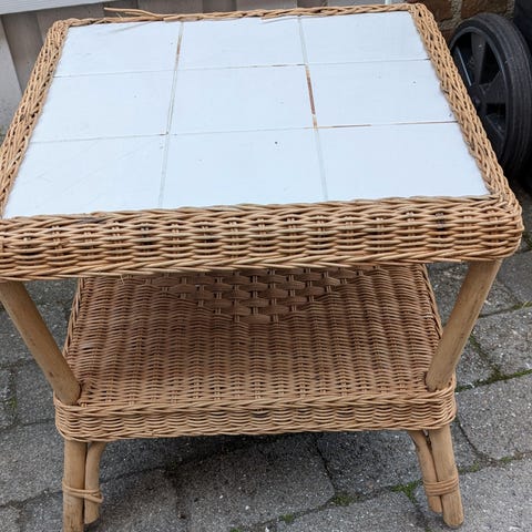 Sofabord/hjørnebord i massiv fyrtræ. Hvidolieret.