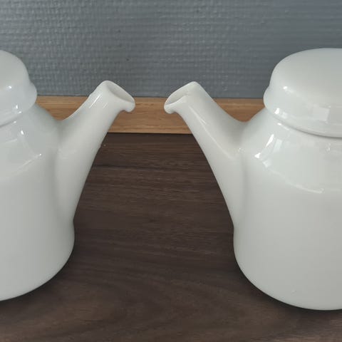 I hvid porcelæn med guldkant.