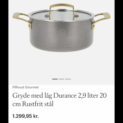 Den berømte franske producent, Pillivuyt, er kendt for dit fine stentøj. Men de laver også gryder i meget høj kvalitet. Her er to hvide gryder i serien Cher . De er på hhv. 2,4 og 4,5 liter. Højden er hhv 9,5 og 13 cm. Diameter hhv. 21 og 25 cm. De er forsynet med meget modstandsdygtig keramisk non-stick belægning. DET ER HELT UDEN PFAS og tåler brug af metal redskaber. Du kan også bruge dem i ovnen og de tåler op til 240 grader, så de er også velegnede til at bage brød i. De medfølger originalt låg til den ene, som vist. Et ikke-originalt låg kan gratis medfølge til den anden, hvis det ønskes. De er I rigtig pæn stand. Den store har noget meget små mærker i bunden. Det har ingen betydning for funktionen, men af den grund er prisen sat lavt. De sælges samlet og prisen er for begge to. De fungerer på alle typer komfur inkl induktion. Nyprisen for de 2 gryder er 1795 kr. Står på Mols men kan gratis leveres I Aarhus og Ebeltoft eller sendes billigt på købers regning