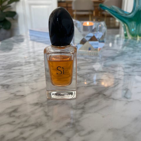 Acqua di Giò Profondo parfume i sort flaske med sølvfarvet hætte. Produkt til personlig brug.