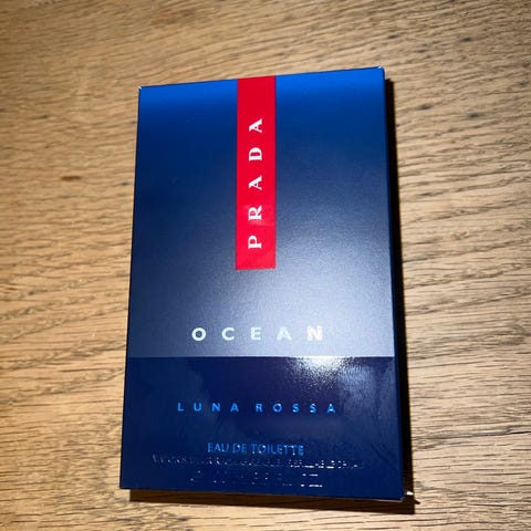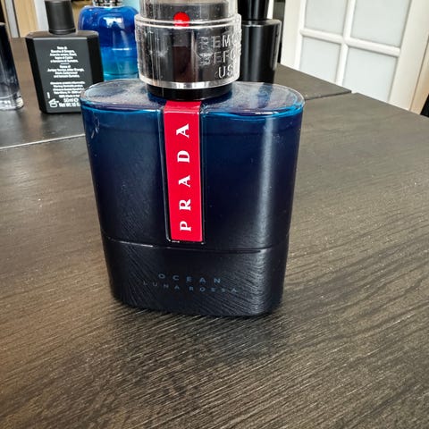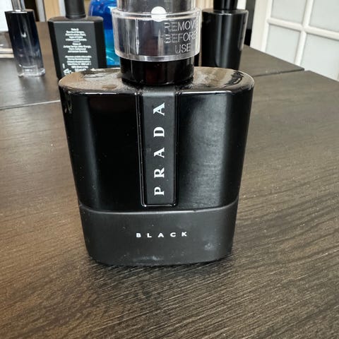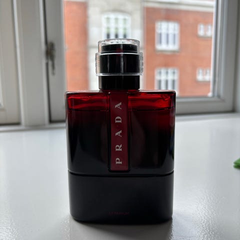 Prada Luna Rossa Carbon herreduft med en karakteristisk sort og rød flaske.