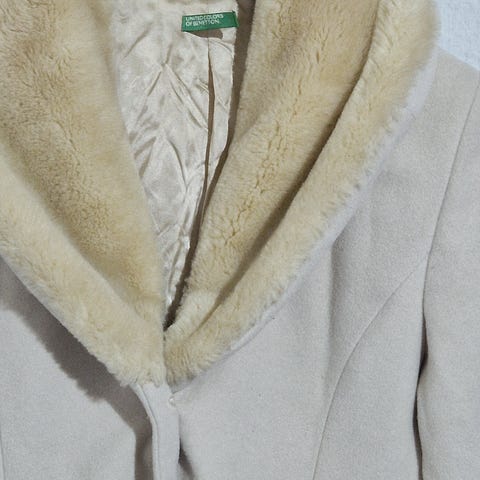 Benetton Frakke Stil, i størrelse 38 til kvinder. Frakken er sort og beige, har en ulden overflade og er lavet i uld, silke og lidt polyester, skiltet er klippet ud, men jeg husker at det var den sammensætning, der stod på skiltet. Den har et enkelt snit med en figursyet pasform, usynlige lommer i siden og smukke knapper. Frakken har været brugt, men fejler ikke noget, som man kan se på billederne.
