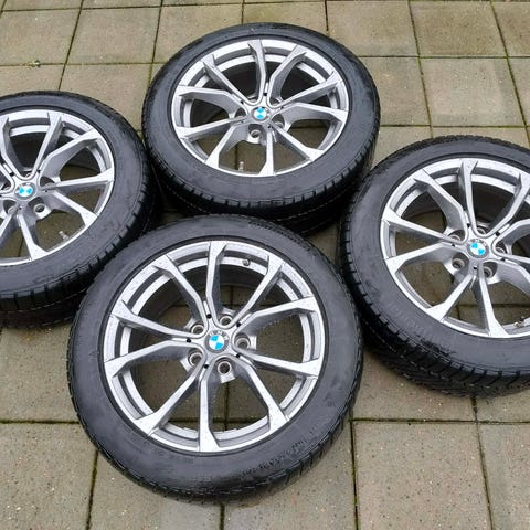 Passer til BMW-modeller i 3-serien m.fl. G20/G21. Brugt på en leaset BMW 330i.. Fælg: BMW Style 776, 7,5Jx17 ET 30. Michelin alpin5, 225/50 R17 94H på alle 4 hjul. 4-5 mm mønster tilbage. Ingen kantstens ridser.. Se billeder af alle 4 hjul. TPMS-ventiler.