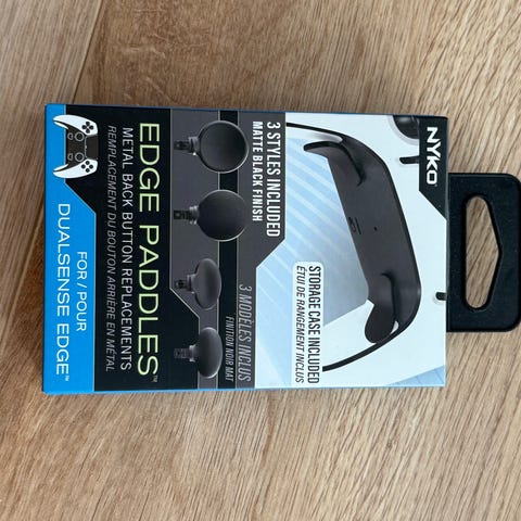Nyko Edge Paddles metal back button replacements til DualSense Edge controller. Indeholder 3 forskellige metal paddles, der kan erstatte standard back knapperne på controlleren.