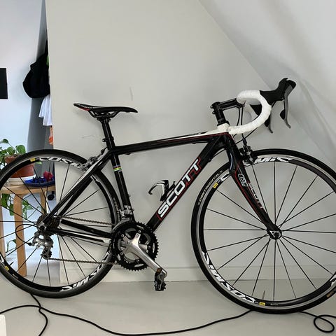 Scott Racer cykel designet til unisex brug. Cyklen har en let ramme, velegnet til racerkørsel og træning. Materialer og specifikke størrelser er ikke angivet, men cyklen har standard racertyre og gearsystem.