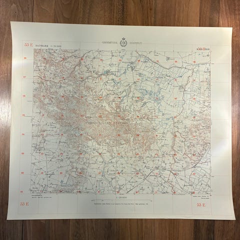 Vægkort fra 1952: Østerby og omegn (perfekt stand)