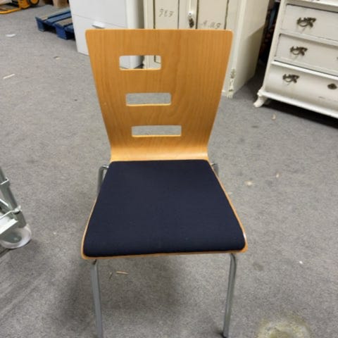 Let stol i tidløst design med krydsforstærkning mellem benene. Velegnet til brug i spisestue eller kontor.