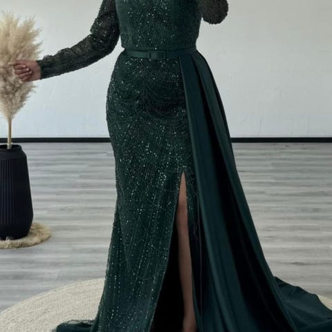 Har en virkelig smuk udskæring for til, lynlås i ryggen og stropper der kan justeres, ligesom bh stropper, og den har et meget meget flot slæb.