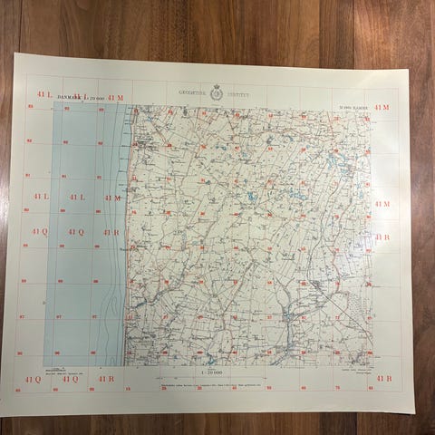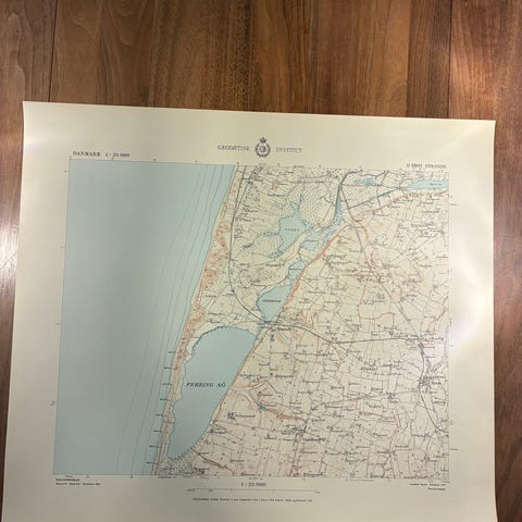 Vægkort fra 1952: Syrsig og omegn (perfekt stand)
